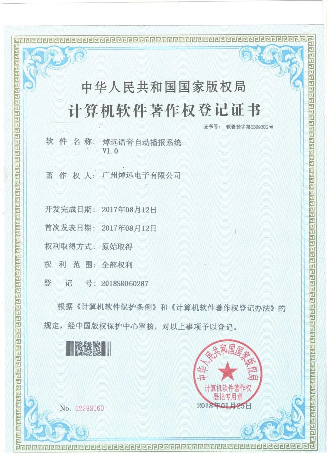 語音自動播報系統(tǒng)證書