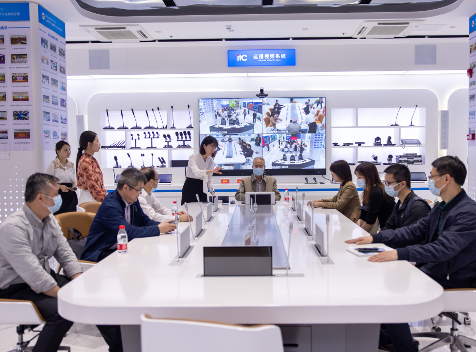 調研組一行先后參觀了itc智能化展廳、無紙化會議室,近距離體驗聲、光、電完美融合的視覺盛宴及數字智慧的辦公應用。
