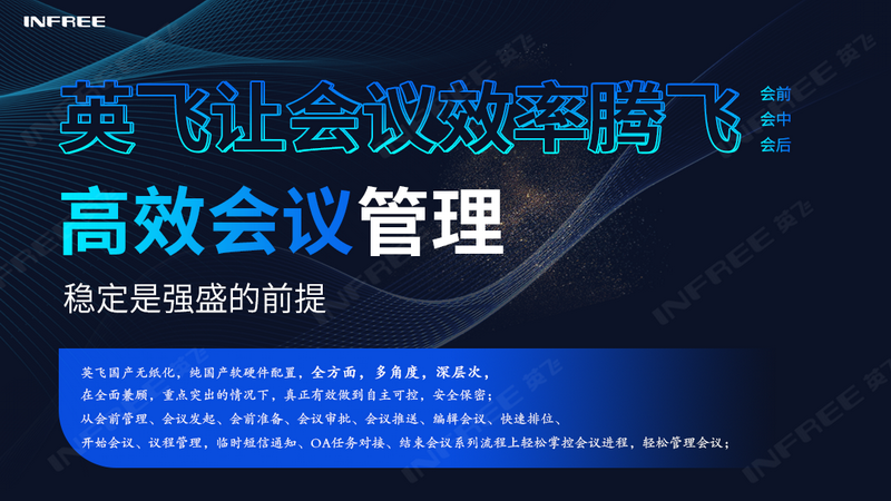 高效的會議管理者往往從會前、會中、會后有序進行,高效管理。英飛國產(chǎn)無紙化,純國產(chǎn)軟硬件配置,全方面,多角度,深層次,在全面兼顧,重點突出的情況下,真正有效做到自主可控,安全保密。從會前管理、會議發(fā)起、會前準備、會議審批、會議推送、編輯會議、快速排位、開始會議、議程管理,臨時短信通知、OA任務(wù)對接、結(jié)束會議系列流程上輕松掌控會議進程,輕松管理會議,提高會議效率,減少和減輕繁雜的后勤保障工作,節(jié)約人力成本資源。早在去年的兩會,就有人大代表熱議無紙化會務(wù)新風(fēng)尚。無紙化辦公可以提高效率、減少浪費。無紙化辦公的環(huán)保,人大會議推進會議文件資料電子化,“便捷、精簡、高效”深受歡迎,大大提升了會議效率,英飛,讓會議效率騰飛!