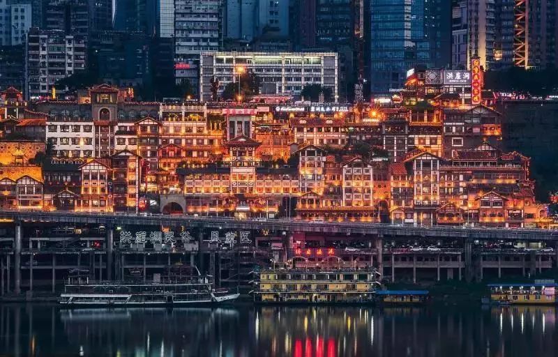以具巴渝傳統(tǒng)建筑特色的"吊腳樓"風貌為主體,依山就勢,沿江而建,每天晚上八點開燈,十點關(guān)燈,是重慶游不得不去的地方,只有晚上你才能明白它為什么可以美得這么震撼,真的是現(xiàn)實版的“千與千尋”。