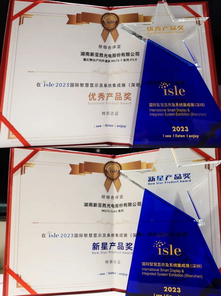 2023深圳國(guó)際智慧顯示及系統(tǒng)集成展(以下簡(jiǎn)稱(chēng)ISLE 2023)正在如火如荼進(jìn)行中。4月7日晚,在ISLE 2023晚宴暨頒獎(jiǎng)典禮上,新亞勝光電憑借高質(zhì)量的顯示屏產(chǎn)品及豐富的場(chǎng)景應(yīng)用方案,MG7S-T系列和MG7S Cube系列分別獲得“優(yōu)秀產(chǎn)品獎(jiǎng)”及“新星產(chǎn)品獎(jiǎng)”。