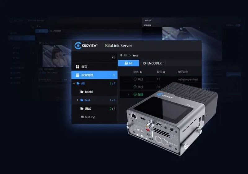 P3可通過KiloLink Server聚合平臺實現(xiàn)本地部署或云部署;聚合平臺兼具設備遠程集中管理功能,如實時監(jiān)測所有設備狀態(tài)、開啟/關閉預覽畫面、一鍵配置產品參數(shù)、遠程固件升級,以及對輸出源解碼推流等。