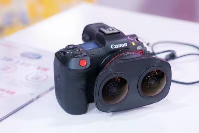 佳能此次還展出了EOS VR系統(tǒng),它是佳能首個由單支鏡頭和可換鏡相機(jī)實現(xiàn)3D VR拍攝的創(chuàng)新解決方案,伴隨該系統(tǒng)佳能一同推出了8K 3D 180°VR拍攝解決方案。