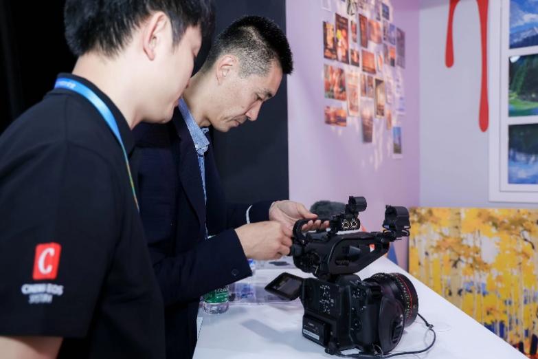 來賓現(xiàn)場體驗佳能EOS C300 MARK III攝像機(jī)和CN10×25鏡頭