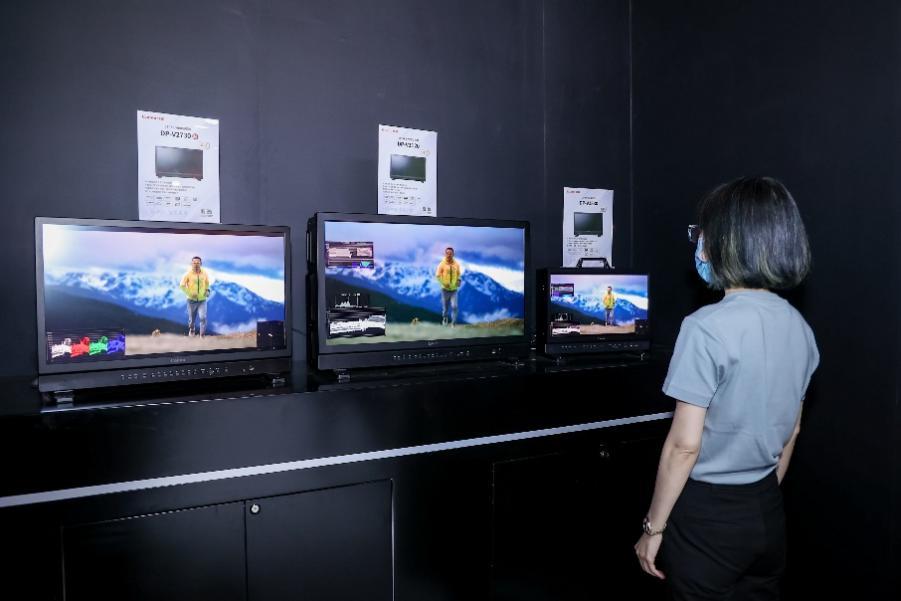 工作人員為觀眾講解佳能攝控一體機(jī)及DP-V2730監(jiān)視器呈現(xiàn)畫面
