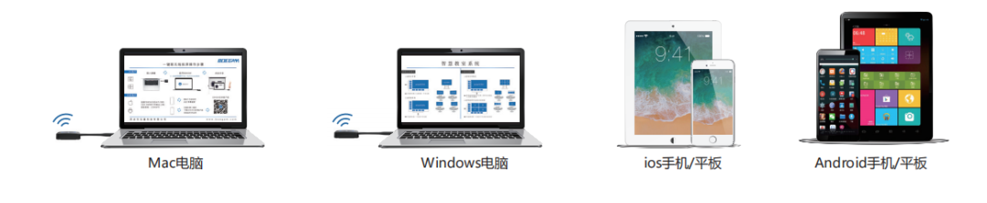 全面兼容,多用戶分享 全面兼容Windows、Mac OS、iOS、Android、鴻蒙 等主流操作系統(tǒng)設(shè)備。充分滿足主流辦公、會(huì)議、教學(xué)、家庭娛樂(lè)等場(chǎng)合的投屏需求。支持16個(gè)用戶同時(shí)接入。不同設(shè)備靈活切換,實(shí)現(xiàn)多方投屏,會(huì)議互動(dòng)更高效。