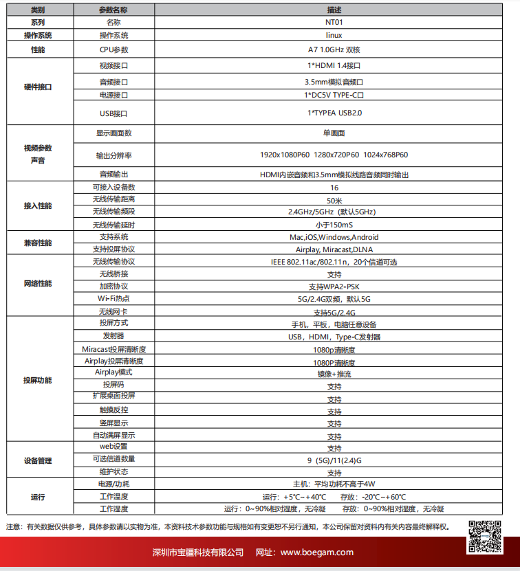 BOEGAM NT01是一款基于linux系統(tǒng)嵌入式硬件架構(gòu)的無(wú)線投屏系統(tǒng),即可將手機(jī),平板,電腦設(shè)備的內(nèi)容無(wú)線分享至顯示終端。全面兼容MAC,iOS, Android,Windows等系統(tǒng)設(shè)備。產(chǎn)品設(shè)計(jì)簡(jiǎn)潔,外觀小巧。安裝便捷,即插即用。