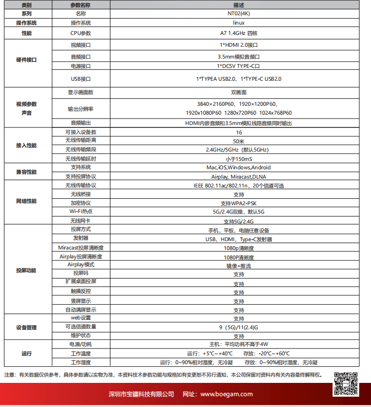 BOEGAM NT02 4K是一款基于linux系統(tǒng)嵌入式硬件架構(gòu)的無線投屏系統(tǒng),即可將手機,平板,電腦設(shè)備的內(nèi)容無線分享至顯示終端。全面兼容MAC,iOS, Android,Windows等系統(tǒng)設(shè)備。產(chǎn)品設(shè)計簡潔,外觀小巧。安裝便捷,即插即用。