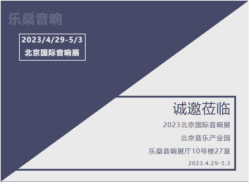 2023北京國際音響展將于4月29日至5月3日舉行,樂燊音響展位是:北京音樂產(chǎn)業(yè)園10號樓27室,誠邀您前來樂燊音響展廳光臨品鑒。