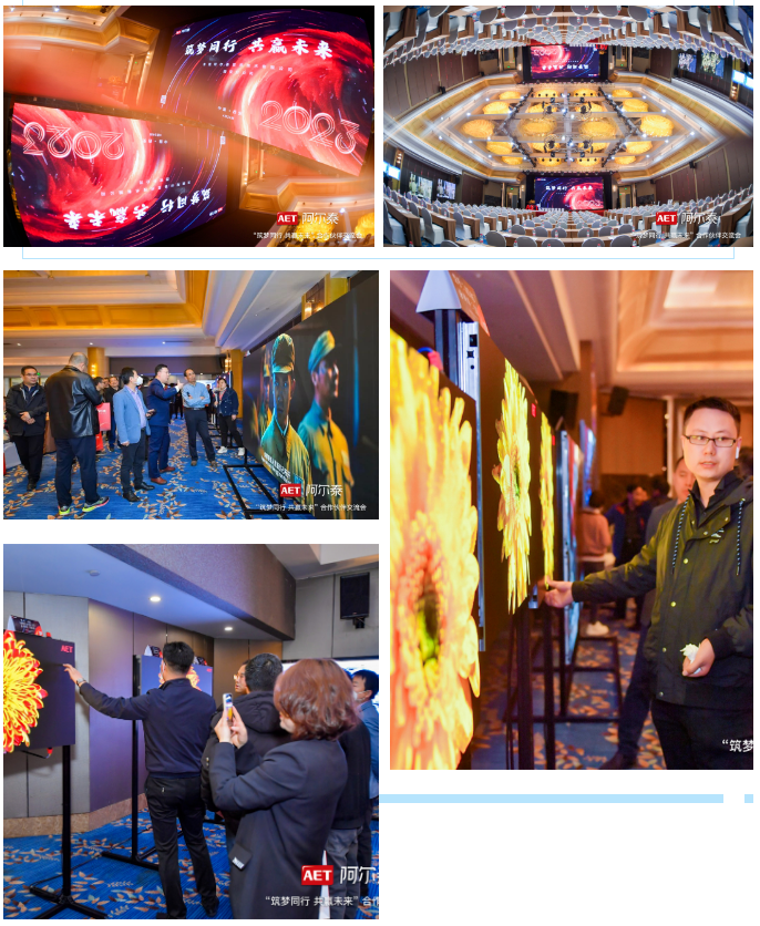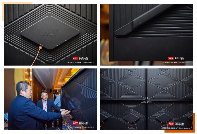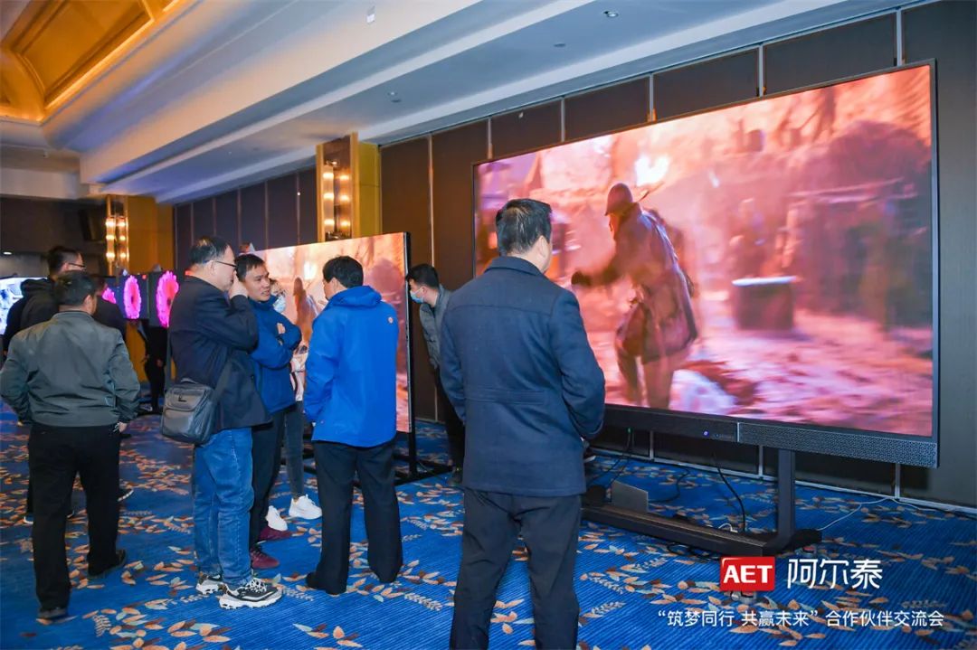 本次交流會現(xiàn)場,AET阿爾泰為到場的伙伴們展示了好萊塢DCI-P3電影級絕美大屏、43/46/55/60吋AT系列HDMI版標準顯示單元、追光系列戶外裸眼3D大屏、NX系列P0.9通用產(chǎn)品、120吋一體機等標桿產(chǎn)品,除戶外大屏外,所有展品均加載QCOB工藝。