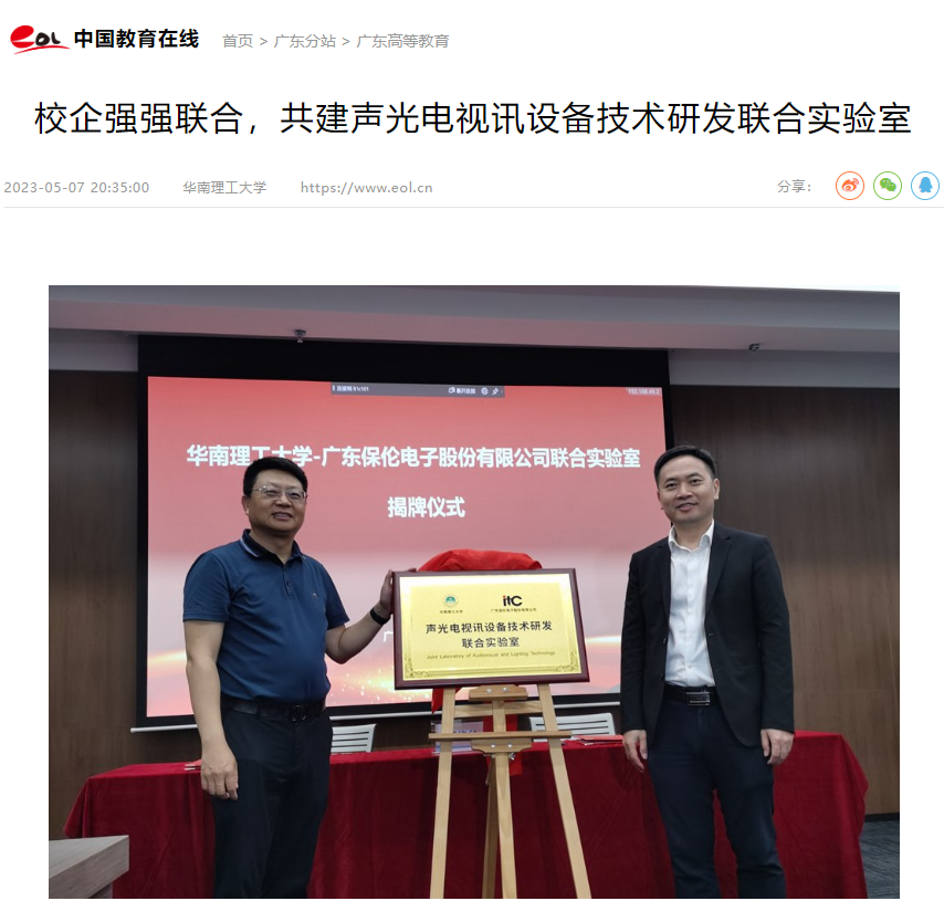 簽約!揭牌!itc保倫股份與華南理工大學(xué)共建聲光電視訊設(shè)備技術(shù)研發(fā)聯(lián)合實(shí)驗(yàn)室