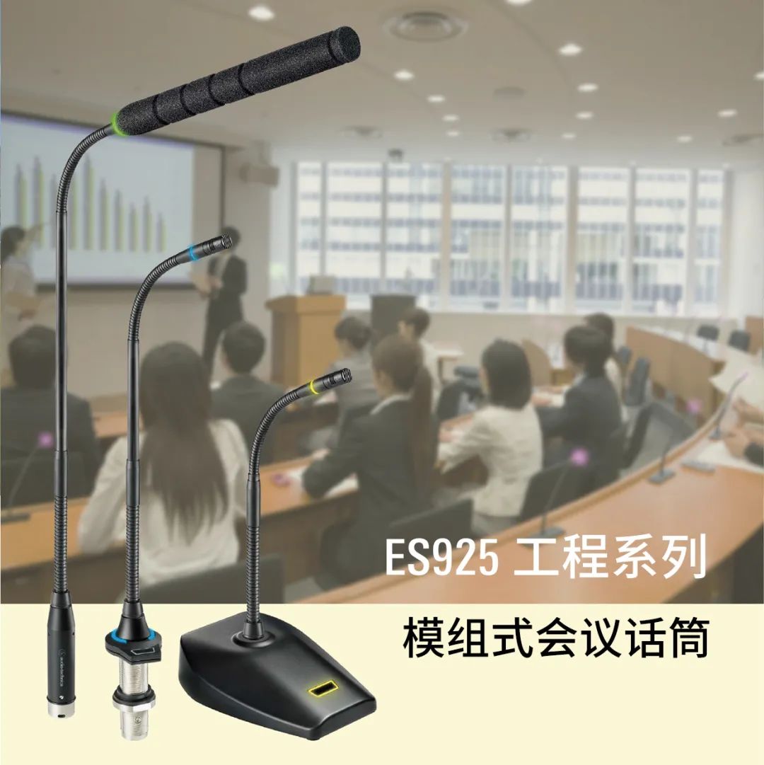 模數(shù)化的ES925系列包含了3種不同收音指向性的話筒元件、6種不同長度的鵝頸管,以及4種供電模組,所有這些組合都可按用戶的需求互換組合。其雙鵝頸式設計,更能準確對準收音目標。