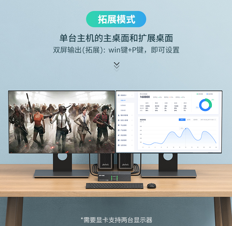 本切換器需要顯卡(集顯)最低有1路HDMI和1路DP輸出接口才可以使用,如果顯卡只有其它輸出接口則不能使用本設(shè)備復(fù)制或者拓展顯示。