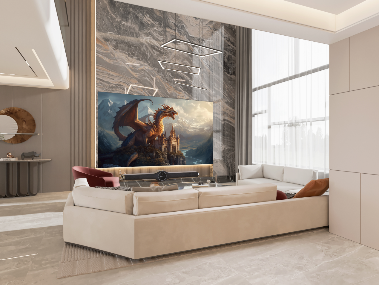 升級后的新一代雷曼Micro LED超高清家庭巨幕優(yōu)化了外觀設(shè)計,借助無縫拼接技術(shù)突破了傳統(tǒng)家用顯示產(chǎn)品的尺寸限制,實現(xiàn)了100%的超級屏占比,采用嵌入式全面屏設(shè)計,真正實現(xiàn)了墻面即屏幕,可完美契合用戶家庭的室內(nèi)裝修風(fēng)格。