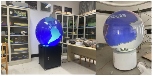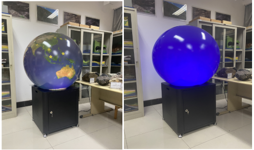 此球型顯示加觸摸互動功能系統(tǒng)可以全方位展示各種天體、地貌、地質(zhì)構(gòu)造、經(jīng)緯度、洋流等等地理知識點的完整形態(tài)。真實立體的展現(xiàn)地理教學(xué)的課件。