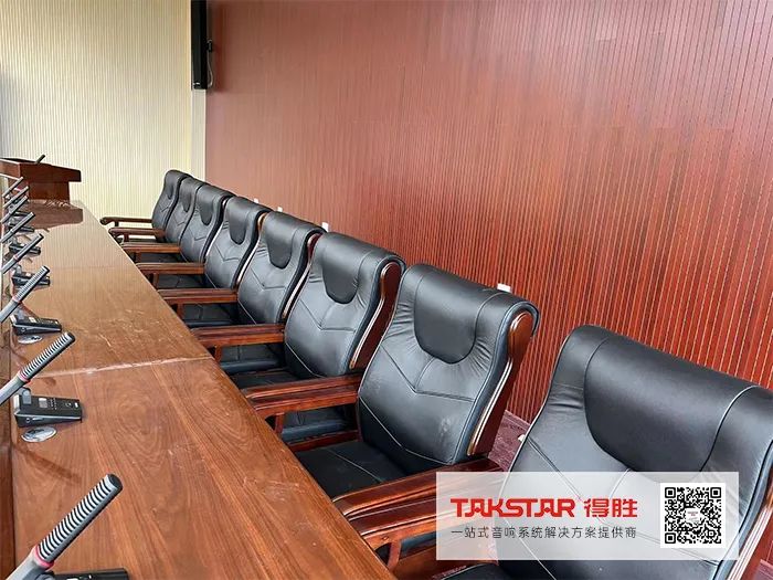 考慮到會議秩序管控的方便性,在拾音設(shè)備上,得勝(北京)專業(yè)音響技術(shù)團隊選用得勝DG-S200有線會議系統(tǒng),系統(tǒng)支持先進先出、普通、聲控、自由、申請五種會議模式,會議控制主機最多可連接128臺會議單元,通過會議擴展主機,一套會議系統(tǒng)最多可接入4096臺會議單元,同時代表機可設(shè)定為VIP代表發(fā)言單元,發(fā)言不受限制。液晶觸控屏顯、自動/手動錄音、發(fā)言定時、同聲傳譯、視像跟蹤等功能加持,全方位助力會議更高效智能化進行。此外,還配備了G5無線麥克風便于其他參會人員發(fā)言使用。