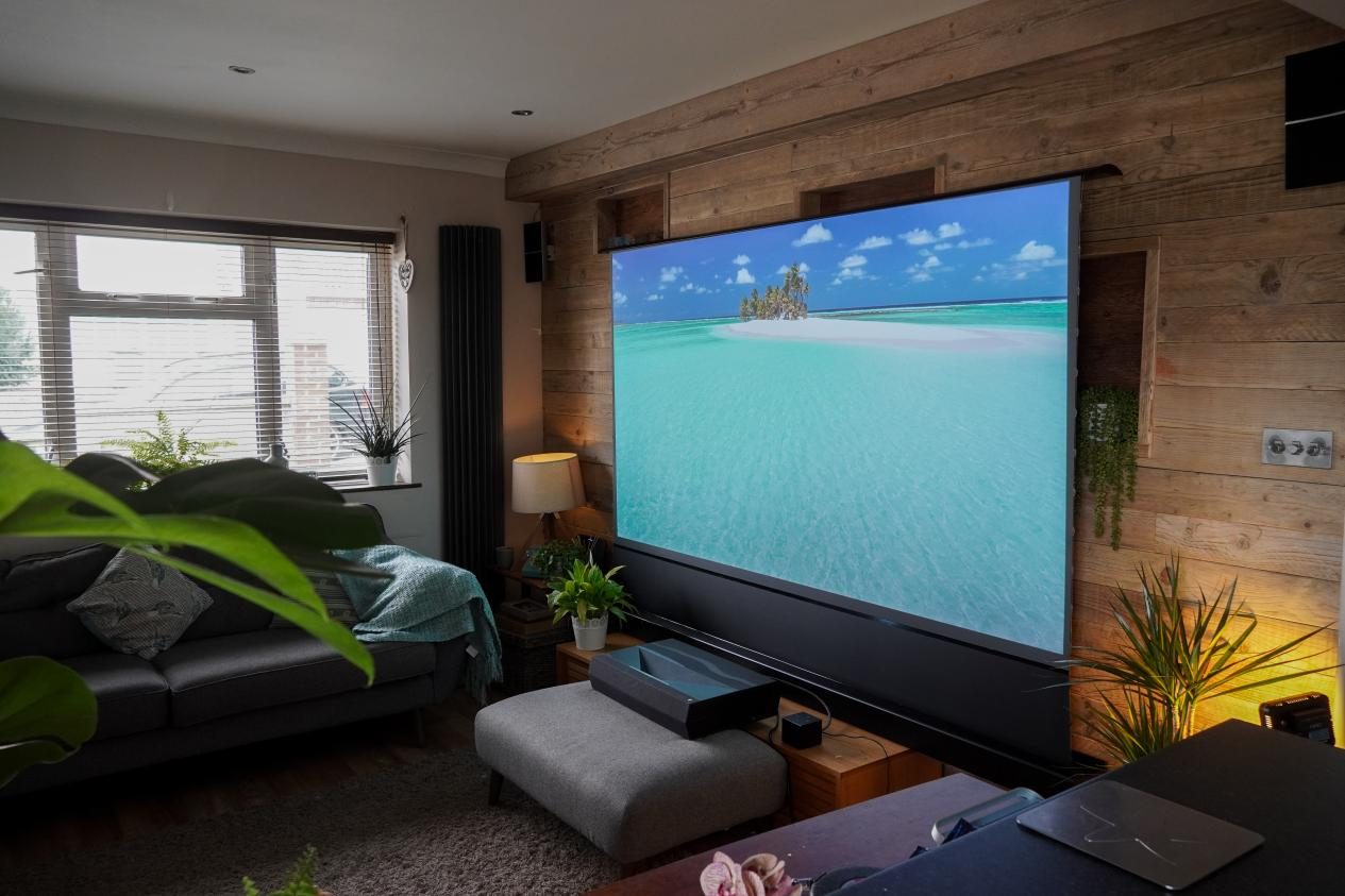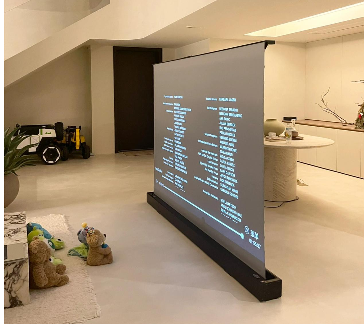 幕布選用適應(yīng)超短焦距激光投影機(jī)臺(tái)灣的黑柵抗光幕布,投影效果極其高清,真正做到開(kāi)燈也可觀影,最高給予4K/8K效果!打造高奢家庭影院,提升觀影品質(zhì)。