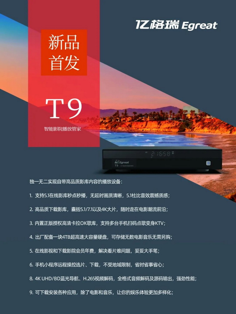 T9是市面上獨(dú)一無(wú)二自帶高品質(zhì)影庫(kù)內(nèi)容的播放設(shè)備,實(shí)現(xiàn)可在線(xiàn)即時(shí)觀(guān)看亦可下載超清源碼大片的全方位內(nèi)容解決方案,是家庭影院首選設(shè)備!