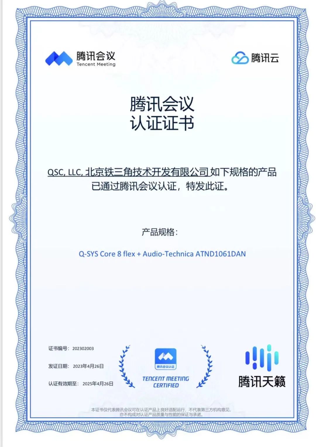 同時(shí),本次展會(huì)現(xiàn)場(chǎng),ATND1061DAN將首次結(jié)合Q-SYS Core 8 flex進(jìn)行演示,我們與Q-SYS的此項(xiàng)合作成果已通過(guò)騰訊會(huì)議認(rèn)證,敬請(qǐng)期待!