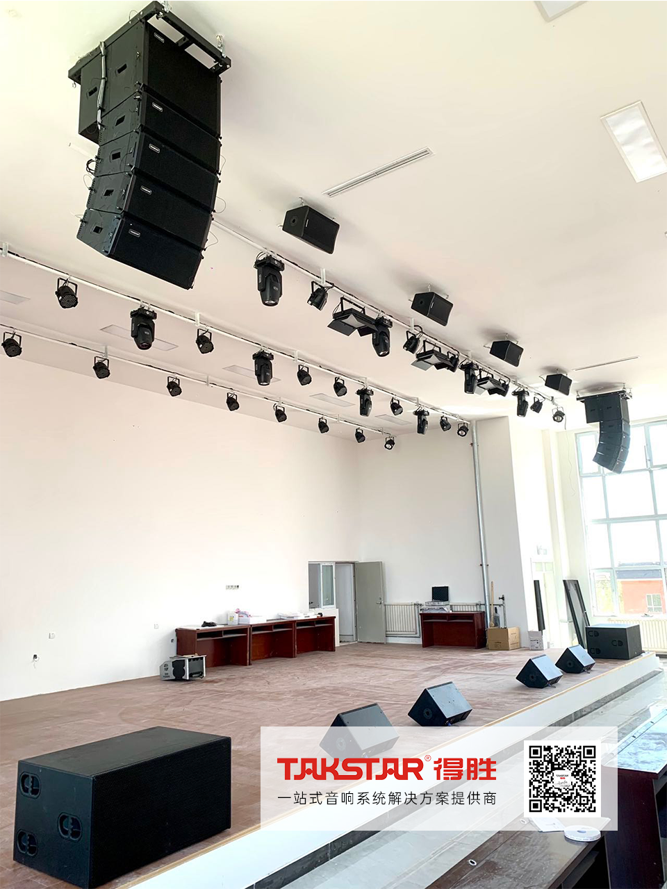 學(xué)校為提高教育質(zhì)量、營(yíng)造多元化的校園文化生活,力求打造一個(gè)擁有優(yōu)質(zhì)的視聽(tīng)環(huán)境的報(bào)告廳。通過(guò)建筑特點(diǎn)、面積大小綜合分析考量,得勝(新疆)專業(yè)音響技術(shù)團(tuán)隊(duì)選用ELA-082線性陣列全頻音箱搭配EKA-N系列功放作為主擴(kuò),低頻厚實(shí)有力,中頻清晰通透層次分明,高音明亮平滑。