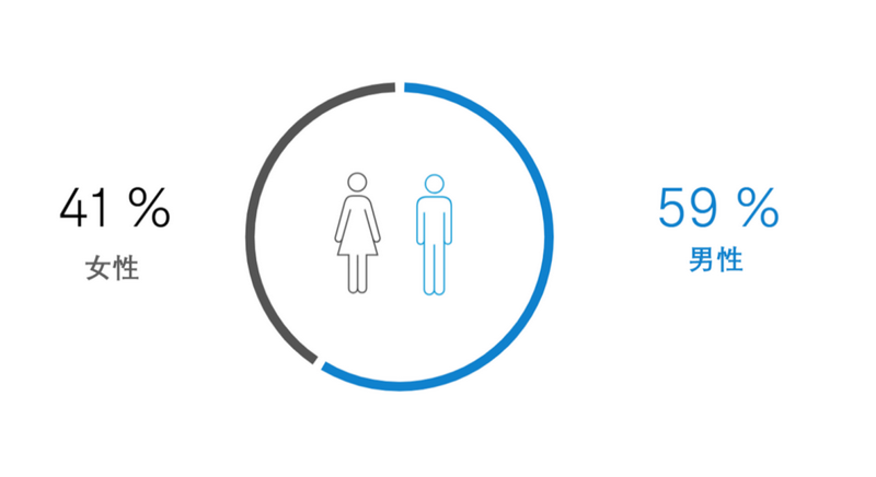 女性的比例為41%,其中管理層的女性比例為19%。