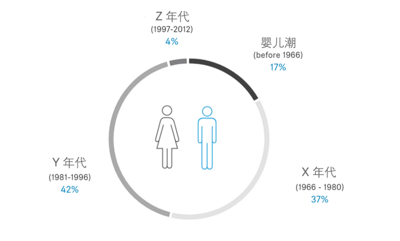 四個(gè)年代的員工一起工作,其中70、80、90后占主導(dǎo)地位。
