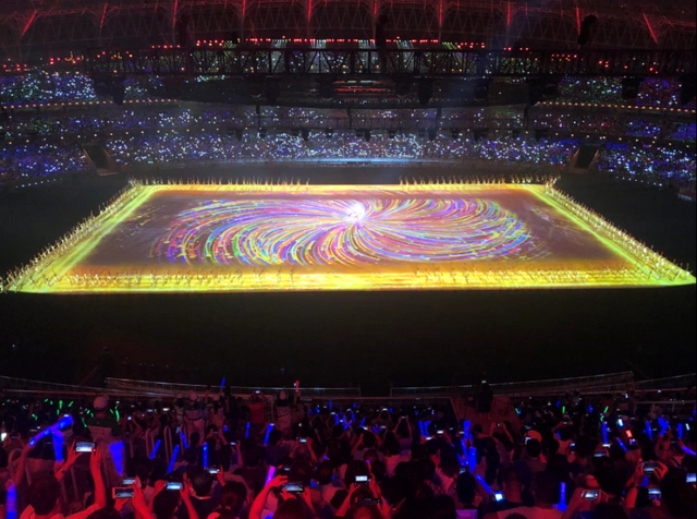 西安奧體中心璀璨奪目,助推“體育+”多業(yè)態(tài)融合發(fā)展。第十四屆全國運(yùn)動(dòng)會(huì)開幕式上,NEC英雄系列雙色激光工程投影機(jī)通過吊裝方式安裝于體育館頂部,采用融合、疊加的方式,從30米的高空投向地面,將地面化身為長28米、寬15米的巨幅畫面,體育與藝術(shù)之美巧妙結(jié)合,聲光電完美交融,給觀眾帶來震撼難忘的沉浸式視聽盛宴,也為跨行業(yè)合作和創(chuàng)新提供了范例和啟示。