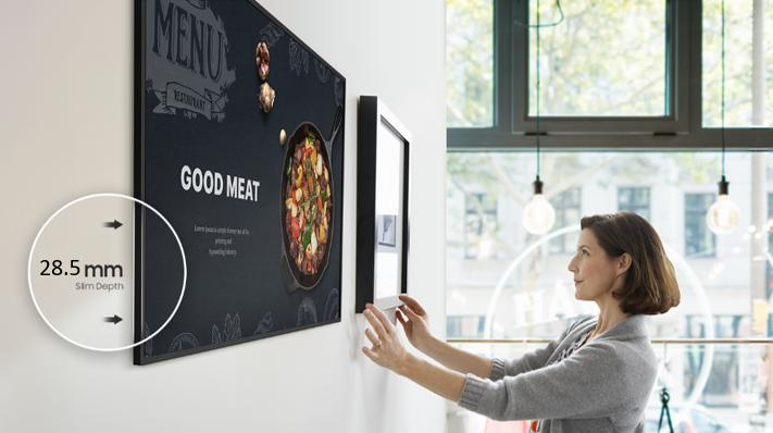 此次QHC/QMC/QBC系列智能數(shù)字標(biāo)牌新品的重磅升級(jí)之處在于將產(chǎn)品厚度降至28.5mm,成為三星數(shù)字標(biāo)牌中最纖薄的產(chǎn)品,配備同樣纖薄的貼合壁掛,能夠有效利用空間。邊框尺寸保持一致的設(shè)計(jì)使顯示屏無(wú)論橫向或豎向顯示,皆能展現(xiàn)同樣出色的視覺(jué)效果。VESA孔位于顯示屏背面的中心位置,可均勻分配重量,確保安裝穩(wěn)固。當(dāng)顯示屏調(diào)整為豎向安裝時(shí),無(wú)需擔(dān)心屏幕傾斜影響展示效果。