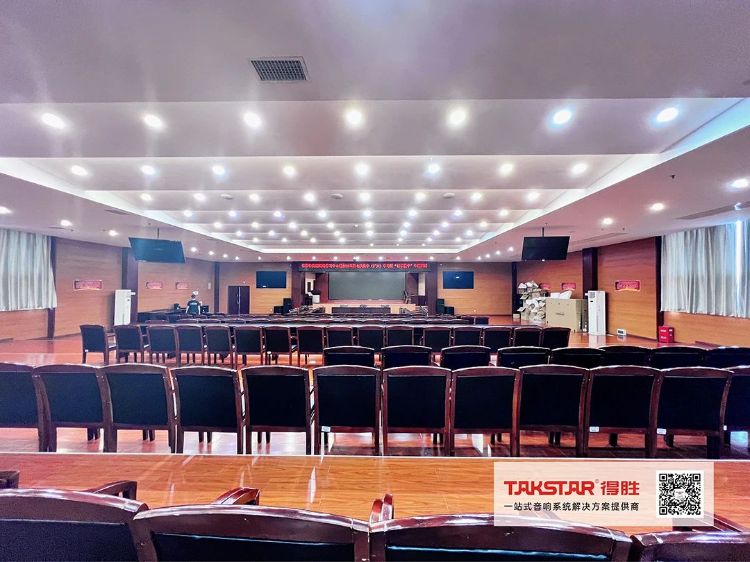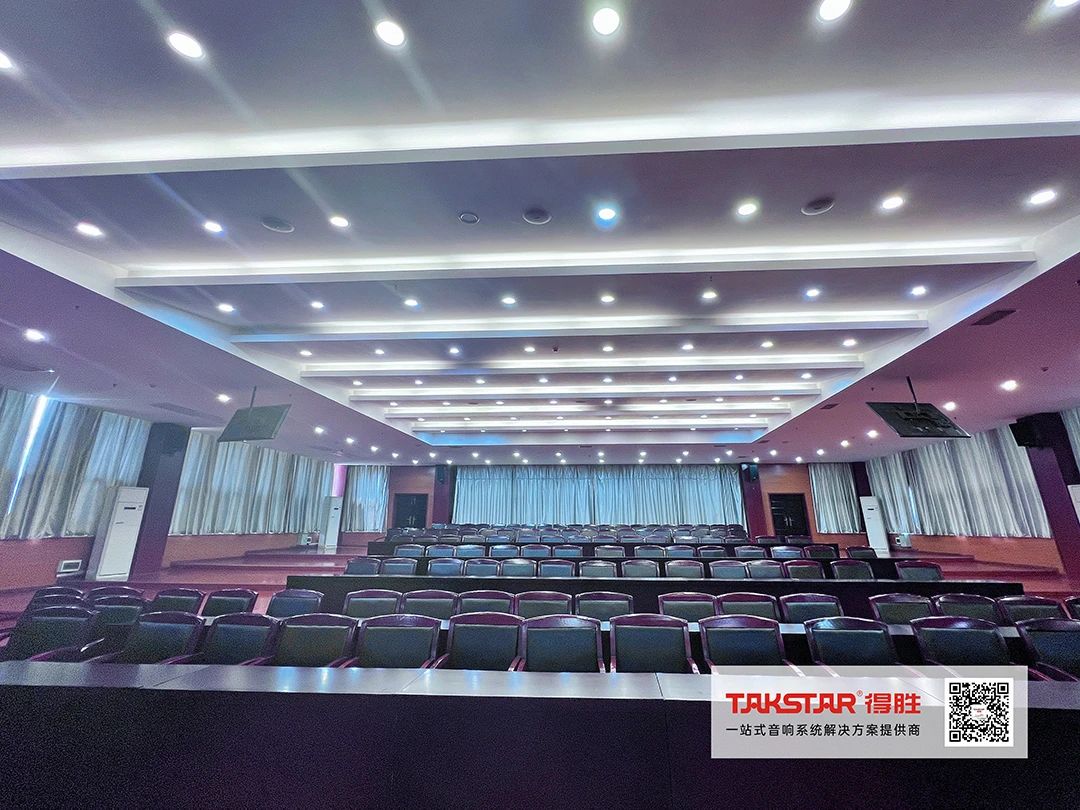 考慮到語言清晰度以及音樂、視頻等多媒體播放豐滿度,得勝(湖南)專業(yè)技術(shù)團隊選用EKS-152全頻音箱為主擴,音箱采用了雙高音設(shè)計,聲音呈現(xiàn)更透亮、細膩且具有穿透力;同時搭配ELV-181超低音箱,提供厚實有力、充沛低頻能量的同時,既保持著清晰的人聲中頻,也能清楚感覺到高頻的泛音體現(xiàn)。EKL-101專業(yè)音箱、EBS-640定阻吸頂音箱為輔助擴聲,確保報告廳達到分布均勻的聲場覆蓋效果及良好的指向性控制。