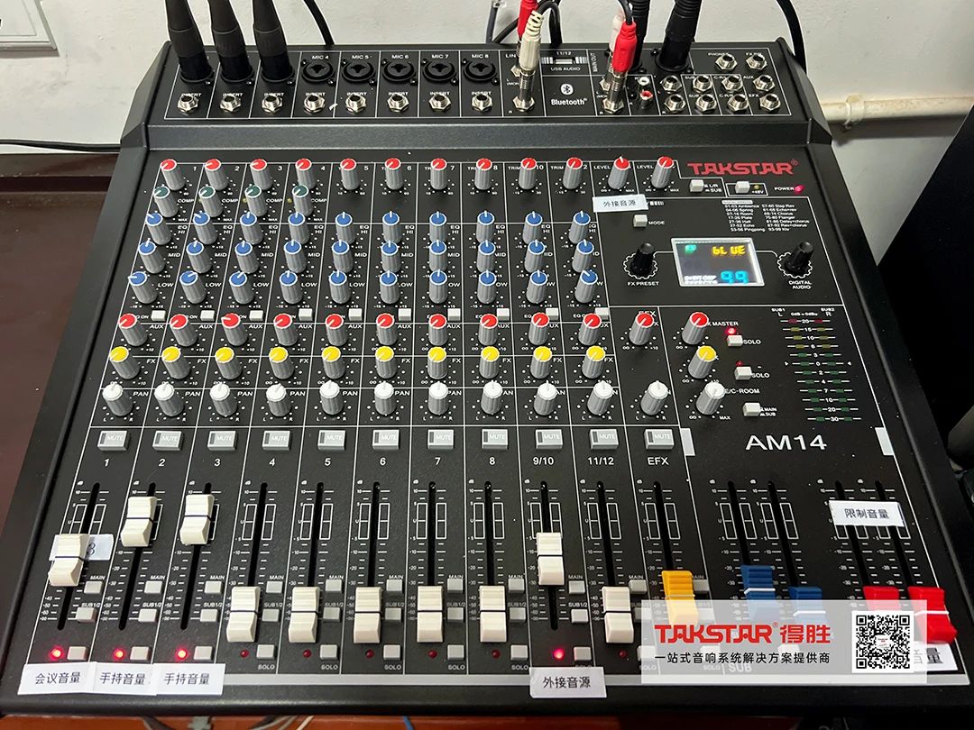 在拾音設(shè)備方面,方案選用G108無線一拖八會議系統(tǒng),其擁有高靈敏度的拾音性能,穩(wěn)定性強,高保真還原人聲,方便就坐發(fā)言席的重要出席人員發(fā)言。加之使用距離可達500米的X7無線麥克風(fēng),以滿足互動式發(fā)言需求,拉近臺上與臺下的距離。AM14調(diào)音臺、EKX系列音頻處理器、FE-224N自動反饋抑制處理器等設(shè)備配置,強大的音頻處理能力配合靈活設(shè)置的精度調(diào)整功能,有效抑噪抗干擾的同時,提高系統(tǒng)的穩(wěn)定性和聲音傳遞效果,使整體音質(zhì)達到理想狀態(tài),獲得現(xiàn)場人員的一致認(rèn)可。
