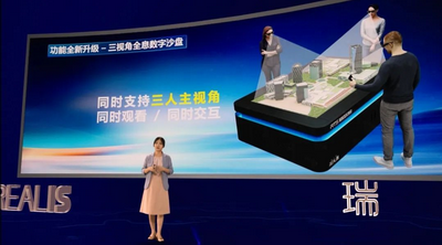 全息3D智能交互數(shù)字沙盤的功能全新升級,從原來雙人主視角升級為同時支持三人主視角,即可支持三個人同時用手柄觀看、操控,形成真正意義上的全息3D交互。