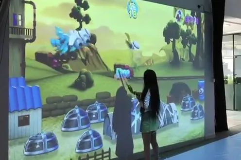 根據(jù)展現(xiàn)位置的不同,互動(dòng)投影又細(xì)分為墻面互動(dòng)、地面互動(dòng)、桌面互動(dòng)等,而墻面互動(dòng)投影應(yīng)用較多,人氣也很高。