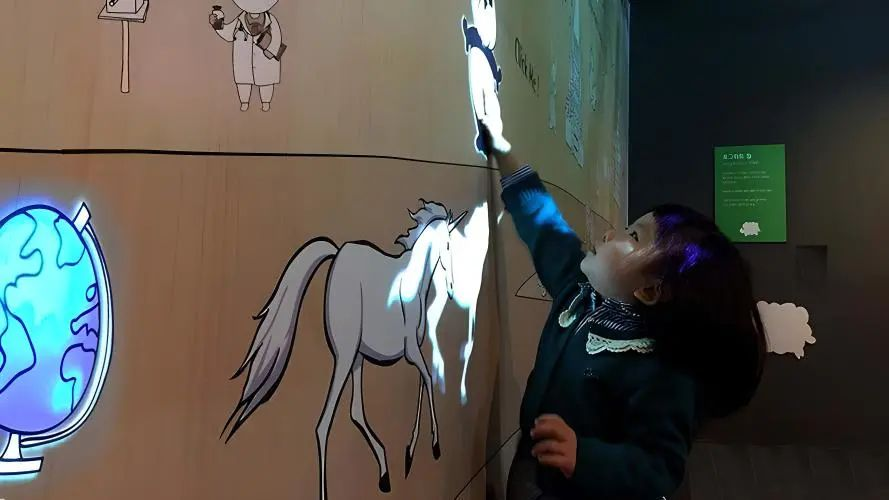 它將墻上看似簡(jiǎn)單的“簡(jiǎn)筆畫”變成“動(dòng)畫”,讓靜態(tài)圖案變得生動(dòng)形象起來,集娛樂科普為一體,吸引觀眾主動(dòng)探索其中的內(nèi)容。