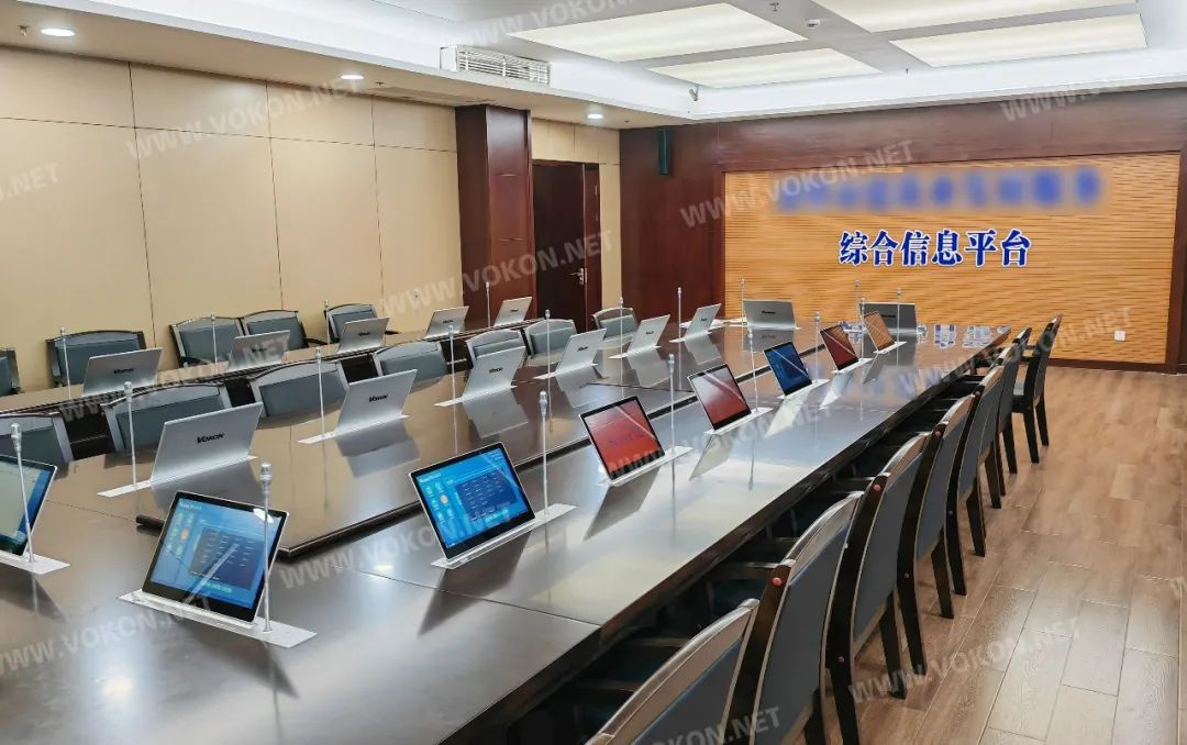 該平臺中心具備開源節(jié)流意識,與VOKON達成合作,在會議室安裝多臺無紙化終端+話筒升降器,徹底告別傳統(tǒng)會議模式的繁雜、低效、泄密,全面提升會議體驗效果。