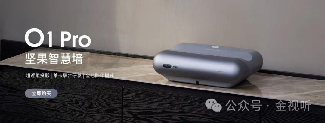 2021年4月,堅(jiān)果投影推出超短焦投影O1,首創(chuàng)智慧墻概念,貼墻即可投100吋的同時(shí),還打造了光影、音樂(lè)、氛圍、助眠喚醒等多重功能。