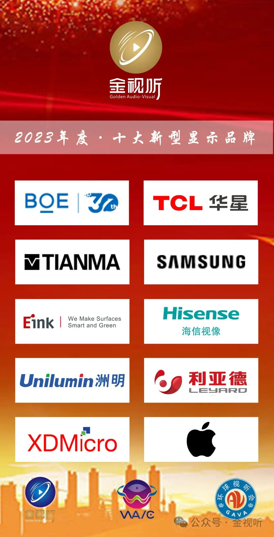 GAV品牌榮耀 | “2023年度金視聽·十大新型顯示品牌”開榜