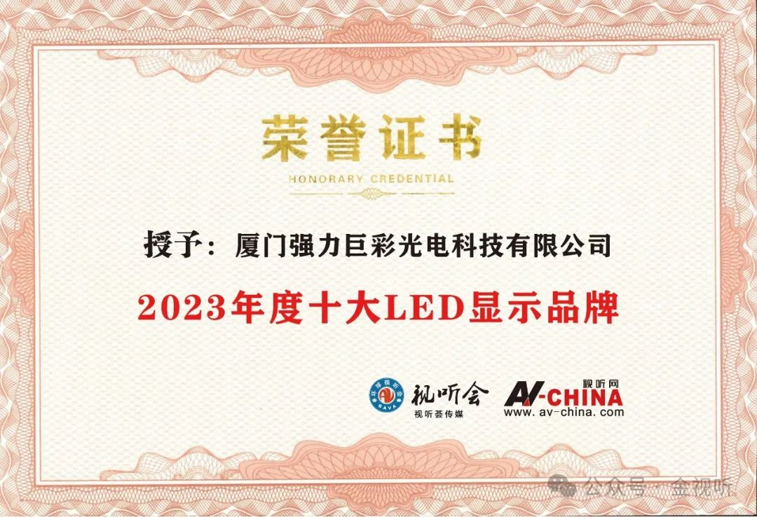 至今,“2023年度金視聽(tīng) · 十大LED顯示品牌”名單正式公布。