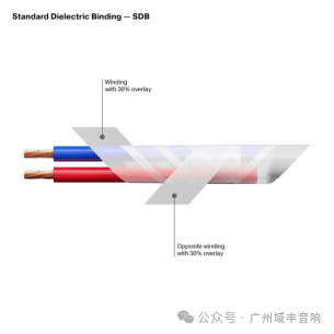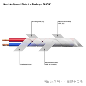 專利技術(shù)SASDB®全稱為Semi-Air-Spaced Dielectric Binding半空氣間隔絕緣粘合膠帶,是一種4層雙向X-Cross PTFE膠帶疊加工藝,其中3個相對內(nèi)層的每個后續(xù)繞組都設(shè)置有氣隙,并且最后一層完成了30%覆蓋。