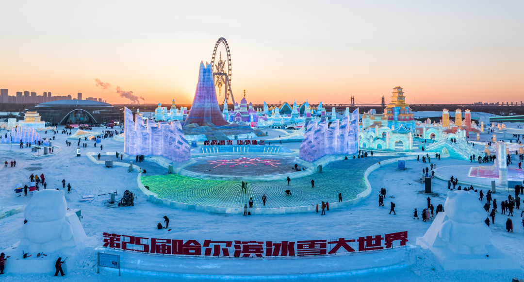 據(jù)了解,第二十五屆哈爾濱冰雪大世界以“龍騰冰雪 逐夢(mèng)亞冬”為主題,為世界各地游客打造一座集冰雪藝術(shù)、冰雪文化、冰雪演藝、冰雪建筑、冰雪活動(dòng)、冰雪體育于一體的冰雪樂(lè)園。