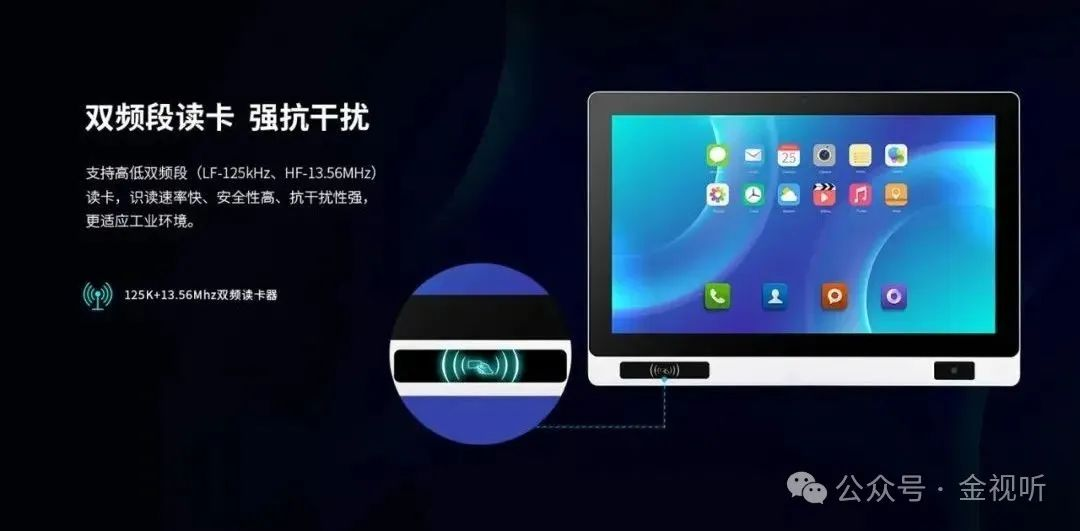 TPC-A14內(nèi)置的二維碼模塊采用大廣角貼近式識讀設(shè)計,支持水平68°、垂直51°的廣闊視場角度,升級柔光掃描,識讀靈敏,柔和不刺眼。讀卡模塊則進(jìn)階支持高低雙頻段(LF-125kHz、HF-13.56MHz)讀卡,識讀速率快、安全性高、抗干擾性強(qiáng),更適應(yīng)工業(yè)環(huán)境。
