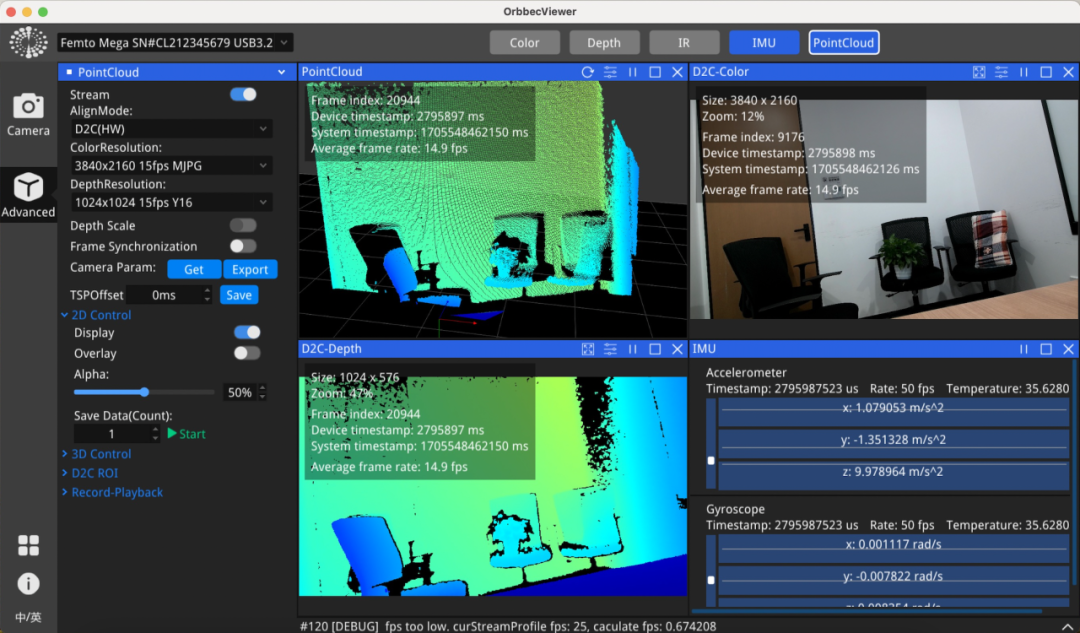奧比中光Femto Mega在Mac OS系統(tǒng)深度彩色圖像對齊效果演示