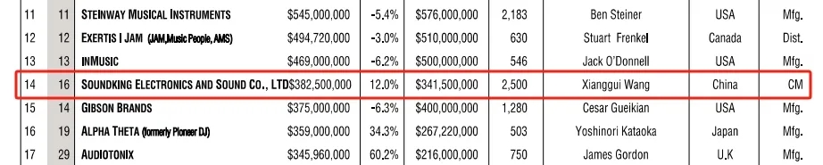 2024年10月,國際權威雜志《Music Trades》,再度揭曉了全球專業(yè)音響與樂器行業(yè)225強榜單。在這份榜單中,音王集團以不可阻擋之勢交出一份傲人的成績,在2021-2023短短兩年的時間里從第16名華麗蛻變?yōu)榈?4名,書寫了屬于音王的全新篇章。