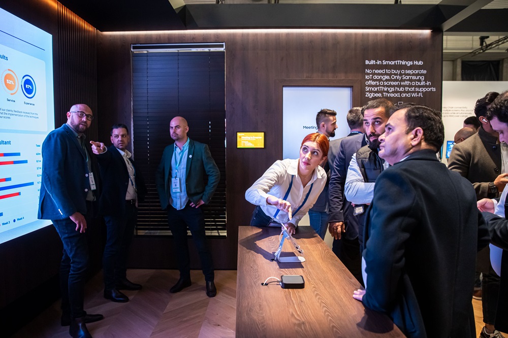 三星通過將SmartThings for Business整合到企業(yè)辦公空間中,展示了其增強型商業(yè)應(yīng)用。用戶可以根據(jù)會議時間表管理和控制各種設(shè)置,同時還可以使用SmartThings Enterprise API定制企業(yè)模板,使體驗更加個性化。
