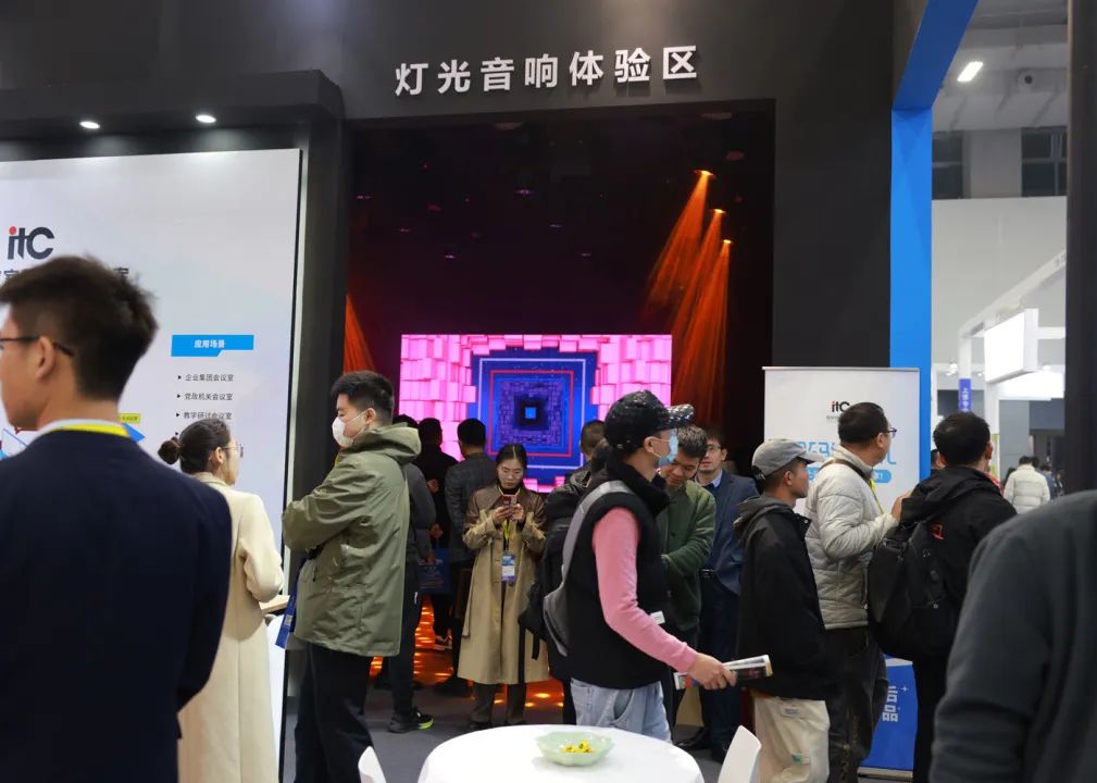 其中,燈光音響體驗(yàn)區(qū)搭建itcLED顯示屏、聲光影綜合管理平臺(tái)、inside沉浸聲、KS卓越演出、舞臺(tái)燈光等系統(tǒng),帶來(lái)超高清的視覺(jué)體驗(yàn)與殿堂級(jí)的擴(kuò)聲效果,深受?chē)?guó)內(nèi)外眾多專業(yè)客戶的歡迎與推崇。