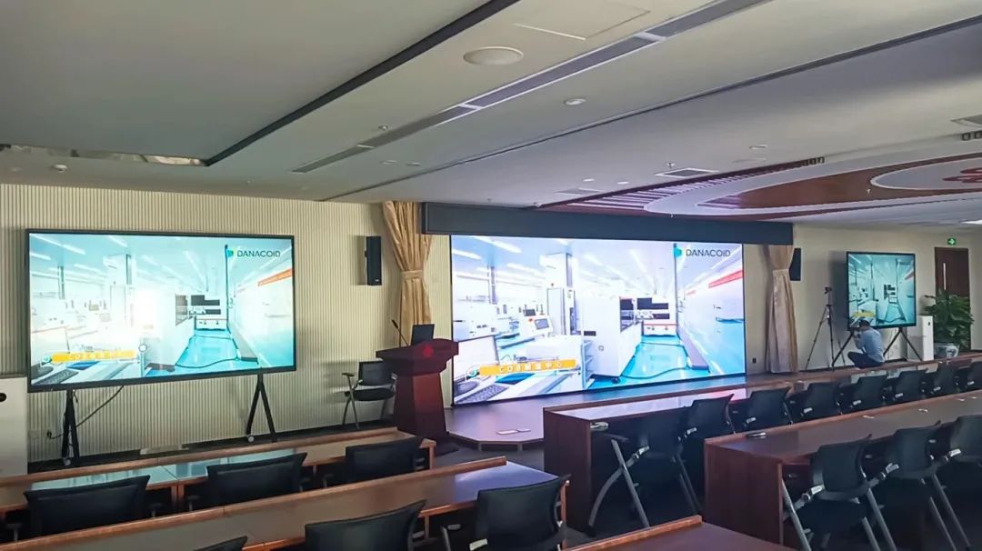 顯示系統(tǒng)采用DANACOID的LCD智慧會(huì)議屏、LED室內(nèi)全彩屏。LCD智慧會(huì)議屏采用窄邊三等邊邊框設(shè)計(jì),高精度紅外觸摸框,支持4K書寫白板。書寫筆跡4K超高清分辨率,書寫筆跡細(xì)膩無比,仿佛是在真實(shí)的紙張上書寫一般。參會(huì)者可以直接在屏幕上進(jìn)行互動(dòng)操作,提升了會(huì)議的互動(dòng)性和效率。選用的LED室內(nèi)全彩屏具備高亮度、高對(duì)比度和廣視角等特點(diǎn),能夠呈現(xiàn)出豐富多彩的視覺畫面。無論是進(jìn)行產(chǎn)品展示、視頻播放還是背景渲染,都能為參會(huì)人員帶來全新的視覺享受。