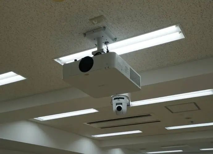天花板上安裝了一臺PTZ攝像機和一臺投影機