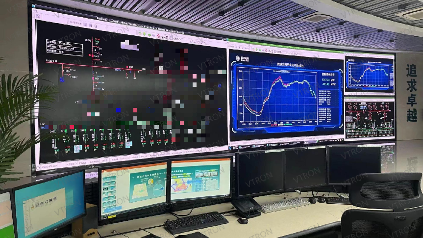 超融屏是中心的主屏,整屏顯示面積76.2m²,從外形看,好像只是簡單的一面屏,其實內(nèi)有玄機,功能一點都不簡單,處理器、控制器、接收卡、轉(zhuǎn)換設(shè)備、電源控制器……全都藏在它屏體里,一個顯示屏體就是一套完整的LED顯控系統(tǒng),它不需要像傳統(tǒng)LED顯控系統(tǒng)那樣,連接一堆線,只需一根網(wǎng)線就能讓各種電力文件、信號、業(yè)務(wù)系統(tǒng)和顯示終端互通互聯(lián),系統(tǒng)節(jié)點大幅度減少,安裝便捷,可靠性更高,為中心營造了一個高效、智能的電力指揮調(diào)度顯控系統(tǒng)。