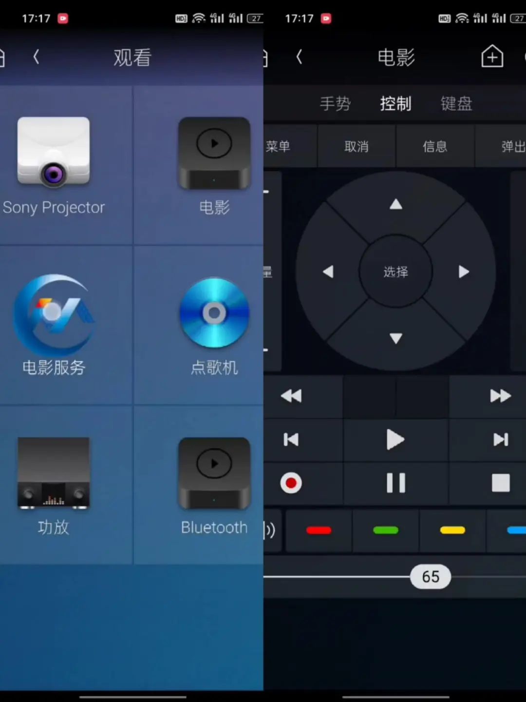 忙碌了一天,來到影音室休憩之時,可以在Control4遙控器上直接選擇要看的電影并通過海美迪高清播放機播放,暫停、快進等播放狀態(tài)隨心掌控。