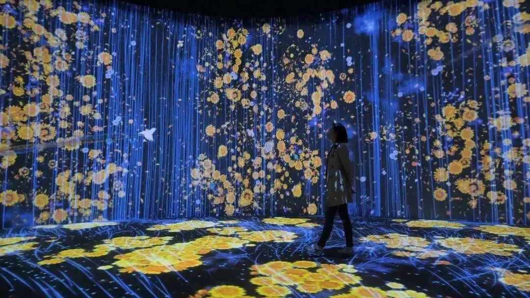 在沉浸式投影展覽中,通常會借助投影機(jī)將藝術(shù)作品鋪滿整個室內(nèi)空間。