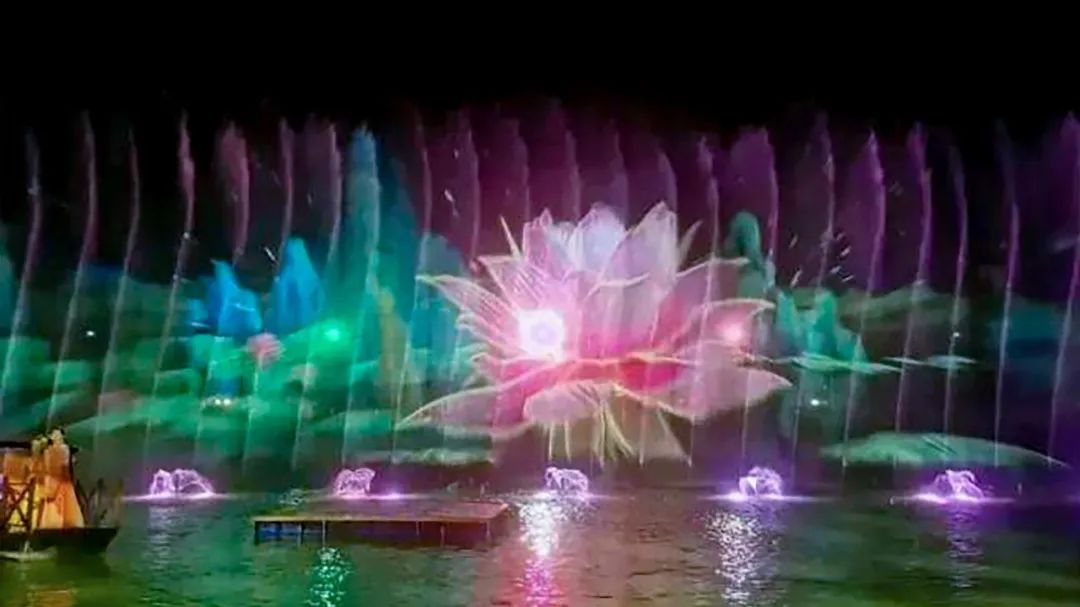 ▲ 投影畫面寬90米*高12米 噴泉的總寬度為150米